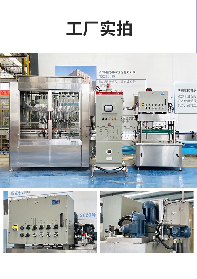 防爆液體酒精灌裝機(jī)是目前國(guó)內(nèi)液體灌裝的高端產(chǎn)品,自動(dòng)化程度高,灌裝計(jì)量精確,適用于塑料瓶、玻璃瓶等各種幾何形狀的瓶型的不含氣體的酒水、飲料、調(diào)味品及其他溶液的定量灌裝。機(jī)器采用觸摸屏代替?zhèn)鹘y(tǒng)的按鈕操作,操作簡(jiǎn)單、方便、直觀。科技含量高。機(jī)器灌裝計(jì)量可通過(guò)觸摸屏對(duì)灌裝時(shí)間的調(diào)整實(shí)現(xiàn)不同計(jì)量灌裝,方便操作者使用。