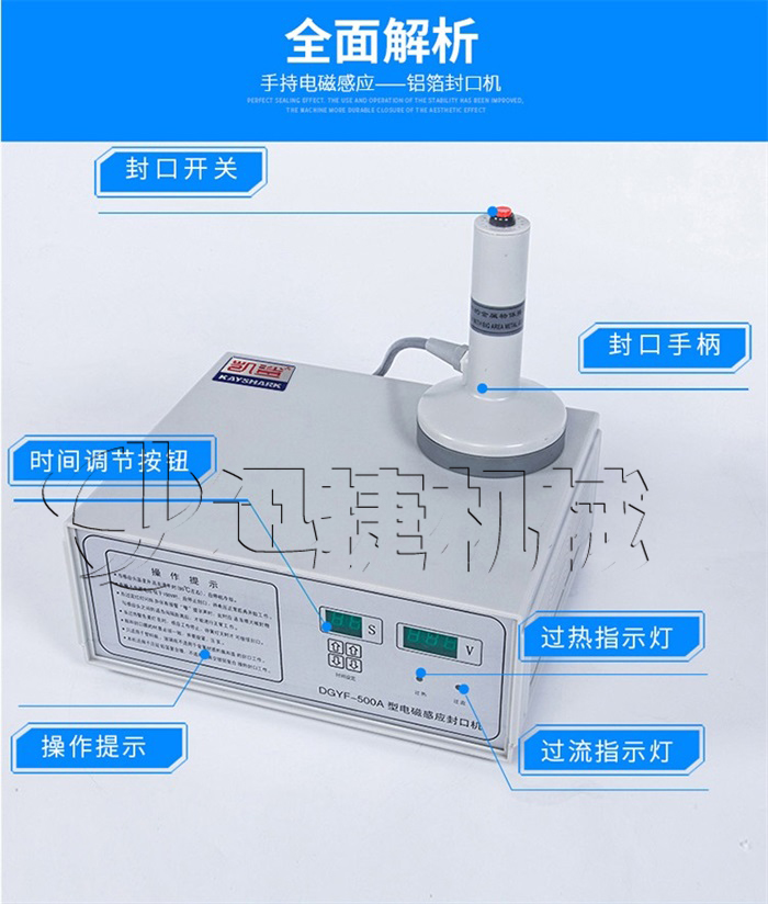 該該封口機為手持式鋁箔封口機,是一種便攜式電磁感應加熱封口設備,專為制藥、化工、農藥、食品、化妝品、輕工行業對容器進行鋁箔嚴密封口,封口材質使用廣泛。
