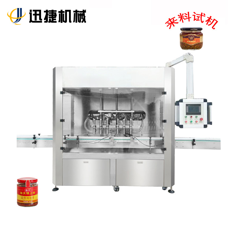 從古至今,每件商品都對日常生活有一定的影響,有它存在的價值。迅捷機械設備有限公司對于濃醬灌裝機的改革創新一直都是非常用心的,一直都在進行著實力的提升,現在,跟隨科技的進步,社會在各領域都取得了明顯的進步,人們的物質需求越來越高,對于高效,高速的設備更加的渴望。因此濟南迅捷對濃醬灌裝機的研制是應合的市場需求及用戶要求,是眾望所歸的。濟南迅捷的濃醬灌裝機不僅顏值高,質量也是杠杠的,你不信?那跟我一起來看一看: